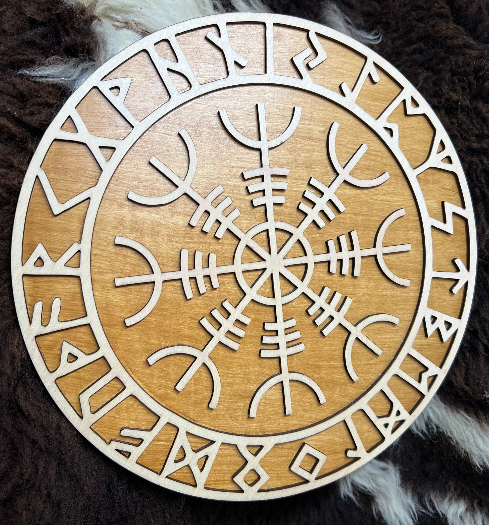Ce contreplaqué de tilleul représente un des symboles les plus puissants de la mythologie nordique. Aegishjalmur, le heaume de la terreur évoque, en effet, la crainte mais protège également du mal et de l’injustice. Il est symbole de force, de protection et de force.