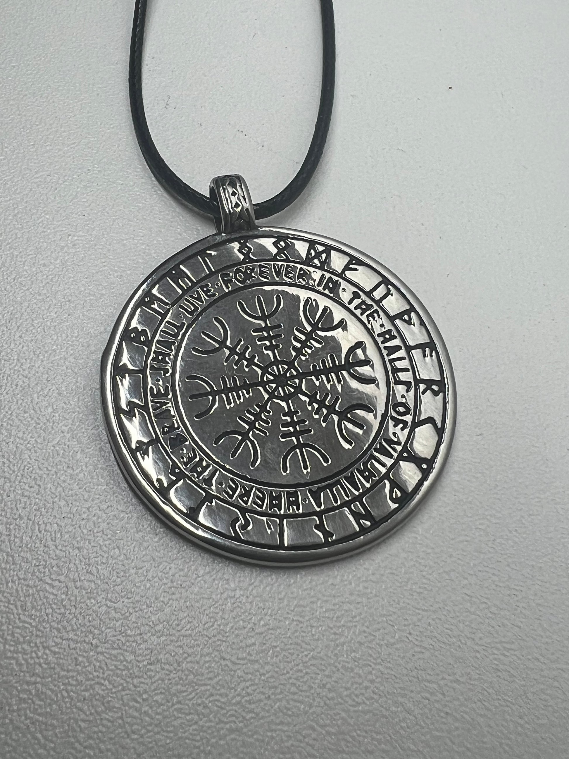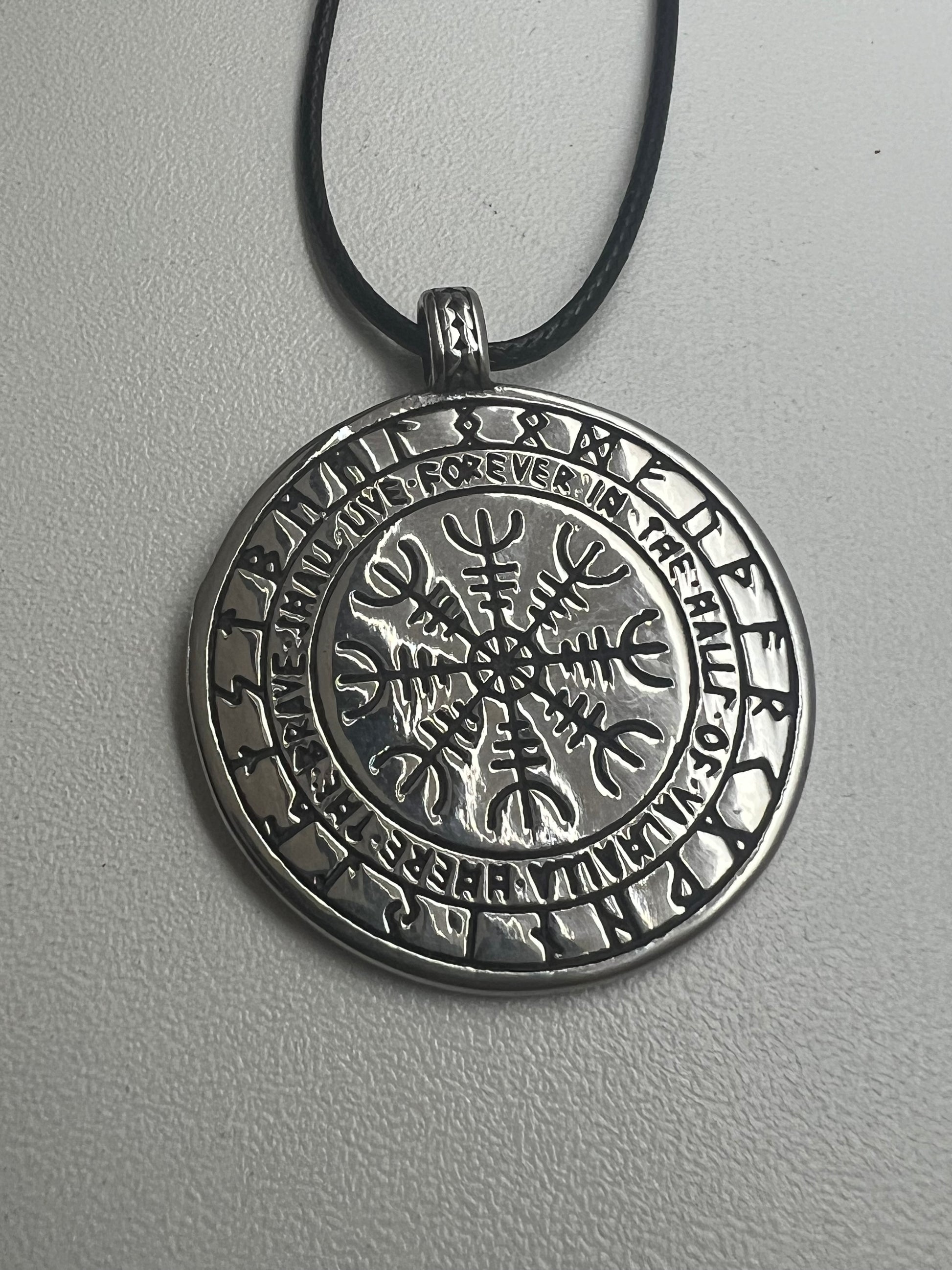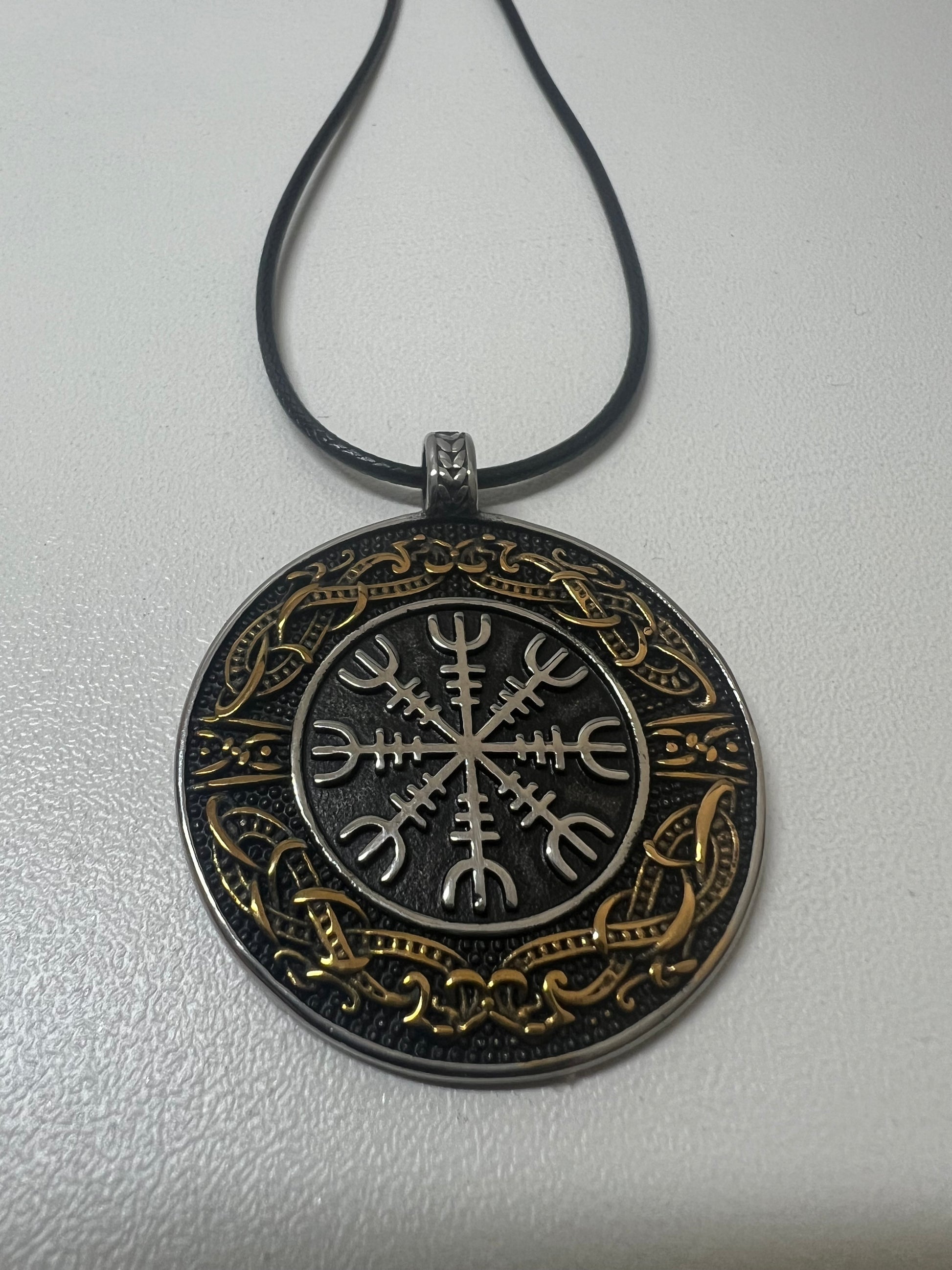 Ce collier viking composé d’un pendentif (amulette) avec le heaume de la terreur et des ornements nordiques est réversible et peut être porté des deux côtés. Fabriqué en acier inoxydable, il symbolise la protection et la force mais évoque également la crainte chez l’ennemi. Idéal pour les amateurs d'histoire et de mythologie, différenciez-vous avec ce collier symbolique.